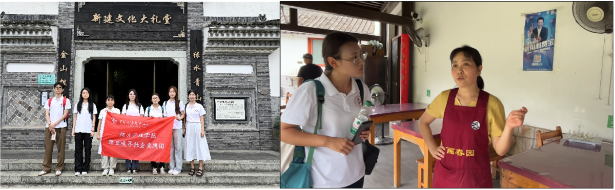 “在建房方面,我们也有一些要求,像是这边的民宿里面的所有装修材料都必须是环保的材料,都是在原有的基础上进行改善,尽可能减少建筑垃圾。” 新建村党支部副书记芦海峰在谈到建设净零碳乡村的具体举措时如是说。他向实践团详细介绍了新建村的历史以及在美丽乡村建设中的具体措施和取得的成绩。随后,实践团在村里展开了“双碳”宣讲,并参观了村内的净零碳实践展厅。实践团在午饭时分来到了“画春园”,品尝了地道的乡村美食,并和中国妇女十三大代表、浙江省优秀女性代表袁君平进行交流。