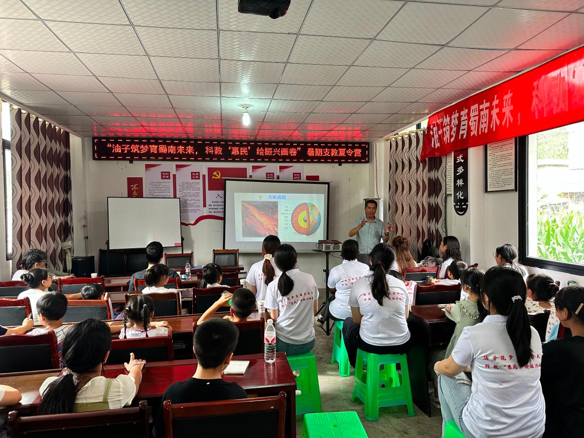 当日下午,“油子筑梦育蜀南未来,科教惠民绘振兴画卷”暑期支教夏令营开营仪式举行。学校师生、珙县底洞镇政府相关人员、惠民村34名学生参加仪式。开云kaiyun官方网站教授团队为惠民村的孩子们科普了地球科学相关知识,教授陈践发讲解了“石油的形成及其在日常生活中的用途”,副教授马勇介绍了珙县当地富存的“页岩及页岩气”相关知识,特邀教师高峰带来了一堂生动的陶笛音乐课。