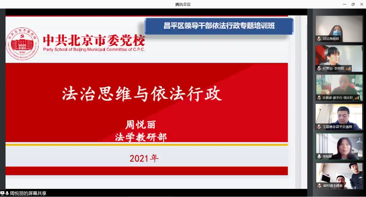 昌平区依法行政专题培训班已在我校连续举办三年,本期专题培训是顺应后疫情时代下的首次线上直播。开班前我校与昌平区司法局就线上直播的各个方面都进行了详细的考虑和安排,并组织了集中测试及培训说明会,确保线上直播效果。
